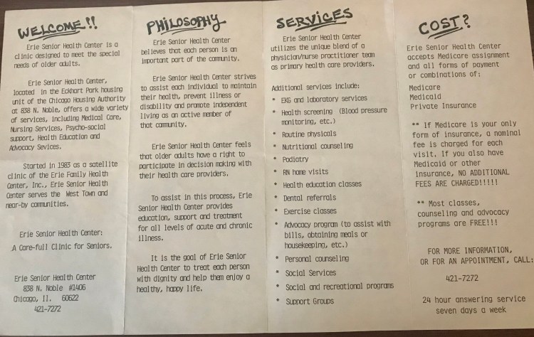 I bet Mark’s clinic, like the Senior Clinic, promoted low tech/high touch. Here is a copy of the brochure from the Senior Clinic that a friend who had worked with me sent recently. He had been sorting through “memorabilia” from over 30 years ago!